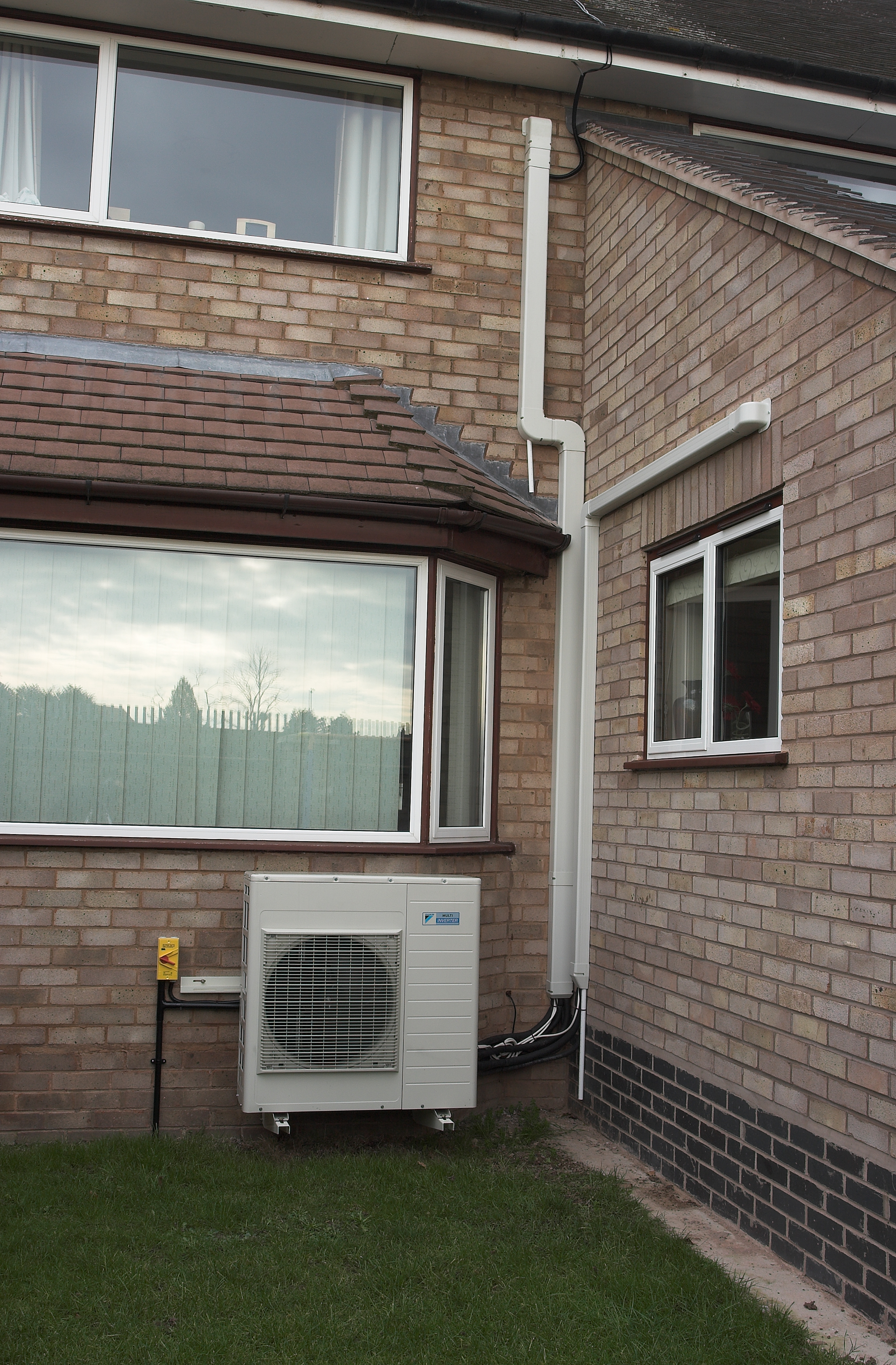 The installation shown identifies the outdoor unit installed under the bay window out of sight. The Daikin unit shown is capable of running up to four indoor units either in cooling or heating mode you can not have one room in cooling and the other rooms in heating with this type of air conditioning unit.